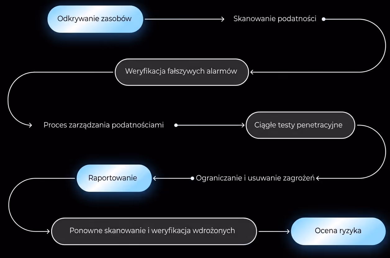 Ciągłe testy penetracyjne zautomatyzowane scenariusze sprawdzają Twoje systemy 24/7.